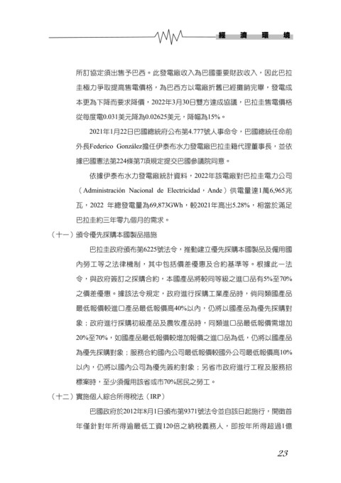 本更為下降而要求降價,2022年3月30日雙方達成協議,巴拉圭售電價格