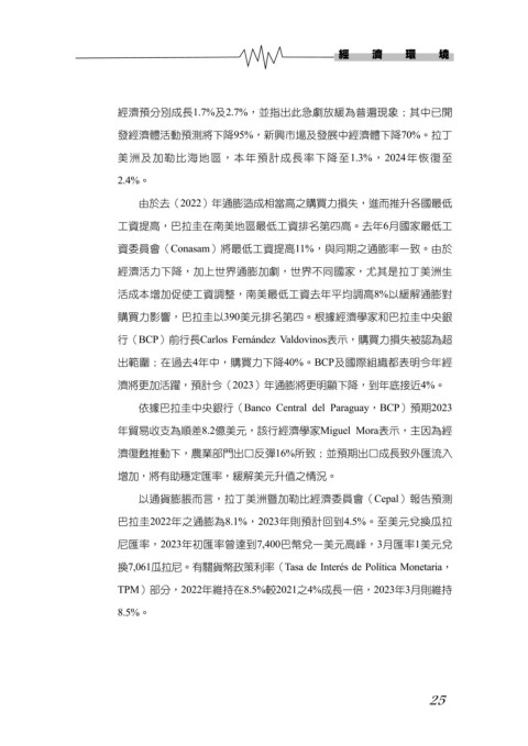依據巴拉圭中央銀行(Banco Central del Paraguay,BCP)預期2023