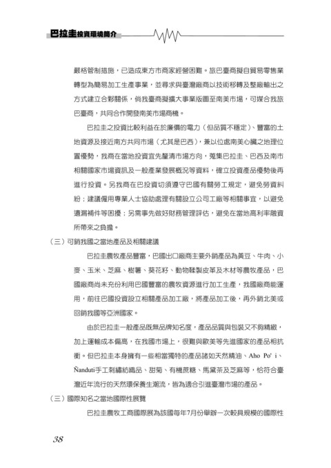 用,前往巴國投資設立相關產品加工廠,將產品加工後,再外銷北美或