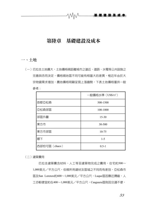(一)巴拉圭土地廣大,土地價格視距離城市之遠近、道路、水電等公共設施之