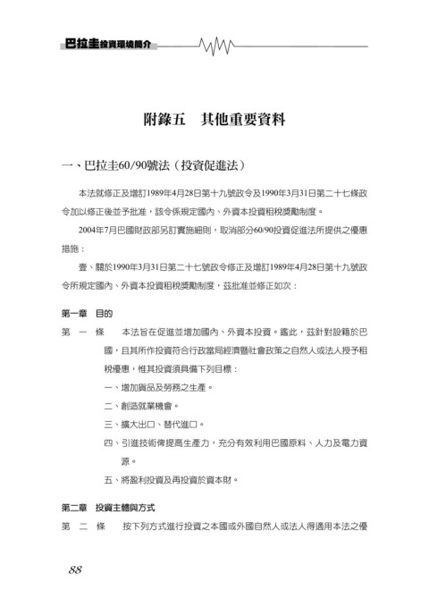 2004年7月巴國財政部另訂實施細則,取消部分60/90投資促進法所提供之優惠