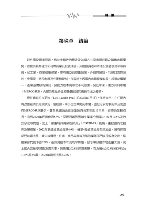 對外國投資者而言,烏拉圭具政治穩定及為南方共同市場成員之銷售市場優