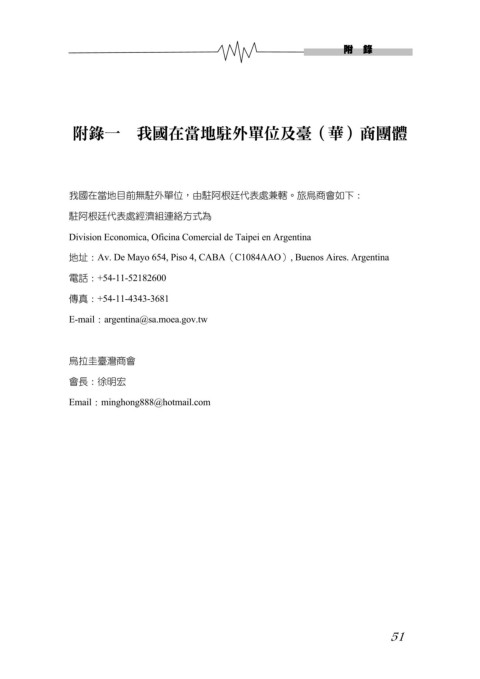 附錄一 我國在當地駐外單位及臺(華)商團體