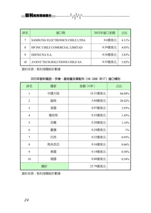 2022年智利電話、手機、基地臺及零配件(HS CODE 8517)進口情形