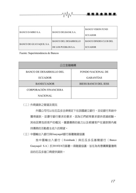 外國公司可以在厄瓜多法律規定下在該國建立銀行,並從銀行系統中