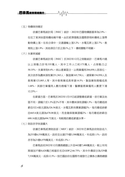 依據巴拿馬統計局(INEC)統計,2022年巴國物價膨脹率為2.9%,
