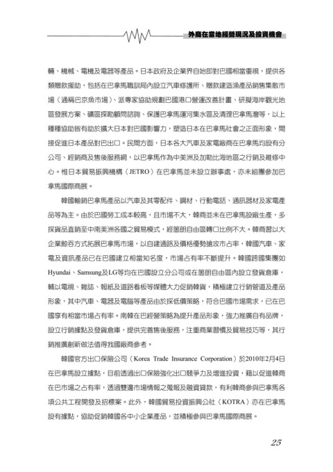 品等為主。由於巴國勞工成本較高,且市場不大,韓商並未在巴拿馬設廠生產,多
