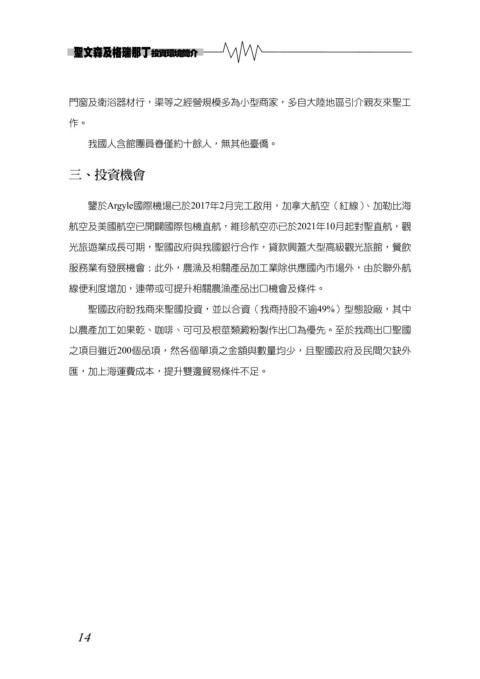 聖國政府盼我商來聖國投資,並以合資(我商持股不逾49%)型態設廠,其中