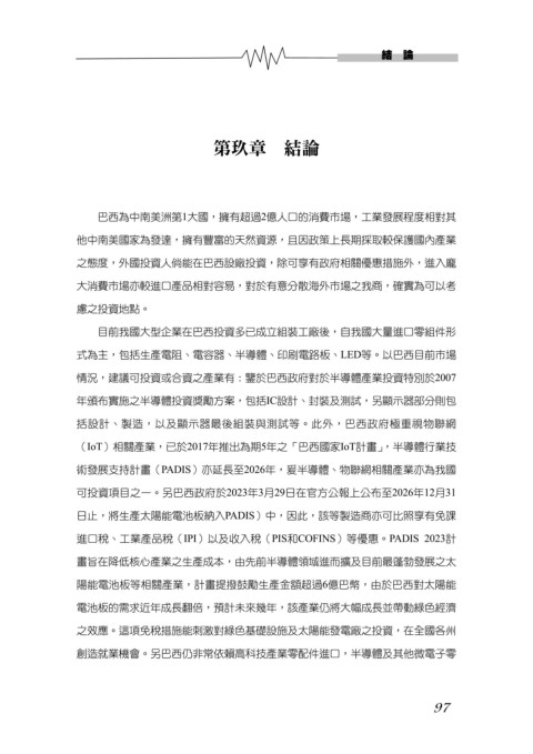 情況,建議可投資或合資之產業有:鑒於巴西政府對於半導體產業投資特別於2007