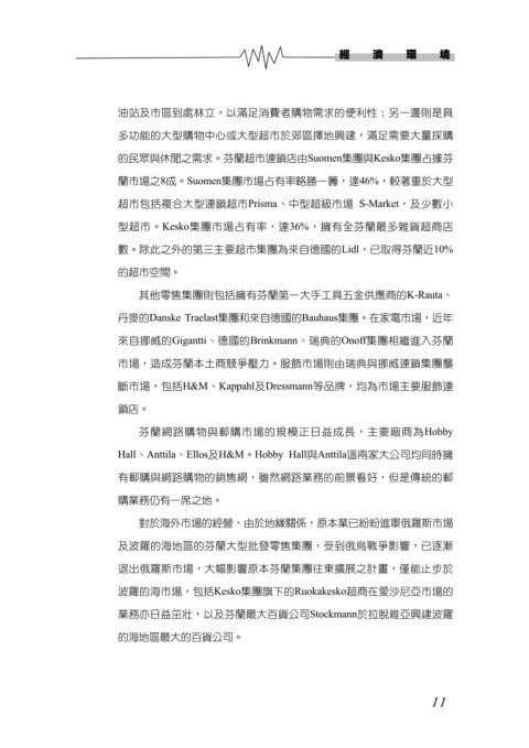 市場,造成芬蘭本土商競爭壓力。服飾市場則由瑞典與挪威連鎖集團壟