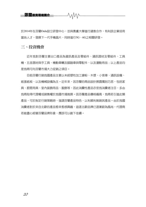 產品,可於制定行銷策略時,強調芬蘭產品特色,以利順利推銷其產品。由於我國