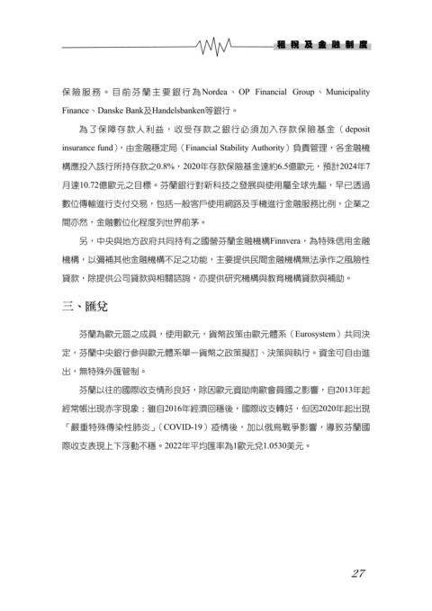 定,芬蘭中央銀行參與歐元體系單一貨幣之政策擬訂、決策與執行。資金可自由進