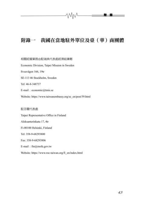 附錄一 我國在當地駐外單位及臺(華)商團體