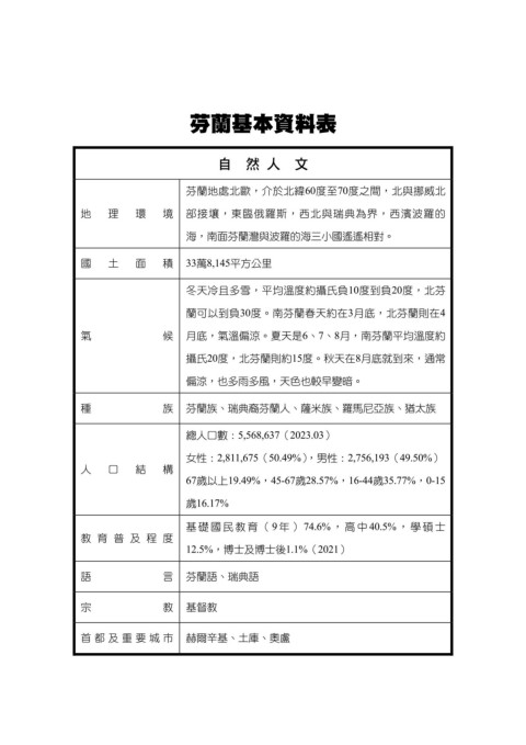 地 理 環 境 部接壤,東臨俄羅斯,西北與瑞典為界,西濱波羅的