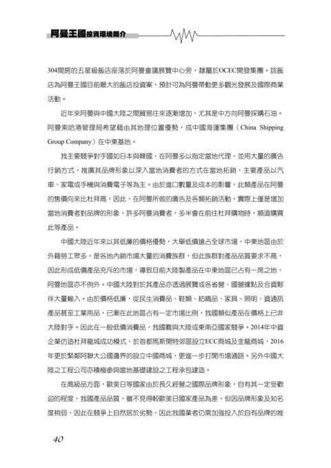 阿曼地區亦不例外。中國大陸對於其產品亦透過展覽或各省營、國營據點及合資夥