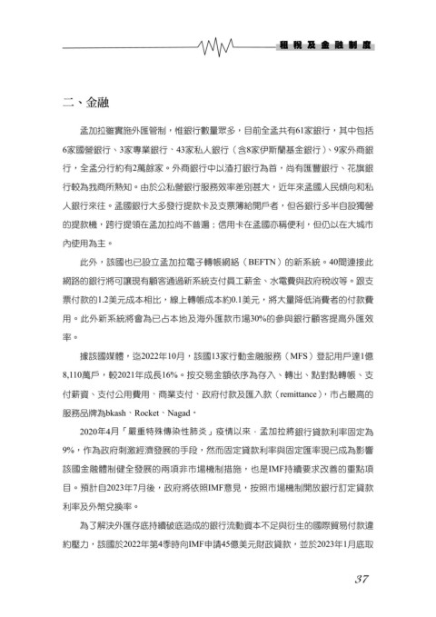 孟加拉雖實施外匯管制,惟銀行數量眾多,目前全孟共有61家銀行,其中包括