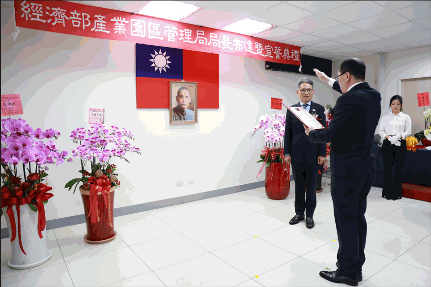 The Bureau of Industrial Parks (BIP) under the Ministry of Economic Affairs (MOEA) held an inauguration and oath-taking ceremony for BIP's new Director General on March 26. The ceremony was presided over by MOEA Vice Minister Chien-Hsin Lai, during which outgoing Acting Director General Chi-Chuan Liu handed over the official seal to incoming Director General Chih-Ching Yang. Director General Yang will continue to lead efforts in upgrading and transforming technology industrial parks and industrial parks, with a strong focus on sustainable operations and effective management.
